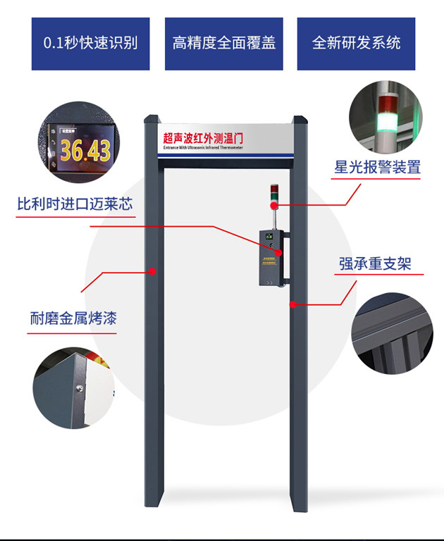 产品用途: 1 机场、海关、港口、车站等需要检测体温场所的安全检查。 2 法院、公安、监狱、看守所的违禁金属物品的安全检查。 3 重要场所、展览馆、展销会、商贸活动集会、庆典会、体育场等重要公共场所的入口检查。