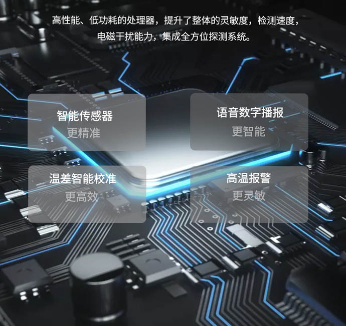 精准探测,高温报警,防干扰,根据不同环境自行调节温差,高性能低功耗的处理器,提升了整体的灵敏度,检测速度快,集成全方位探测系统。