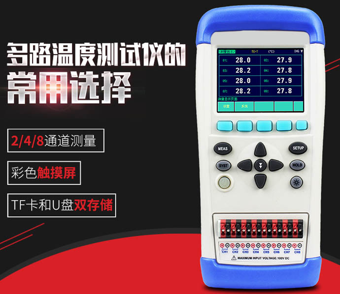 手持式多路温度测试仪采用高性能,32位ARM微处理器控制,可同时对2-8路温度数据进行采集,上超和下超,报警和数据传输,兼容多种传感器。响应速度快,数据稳定,同时具备断偶检测功能。