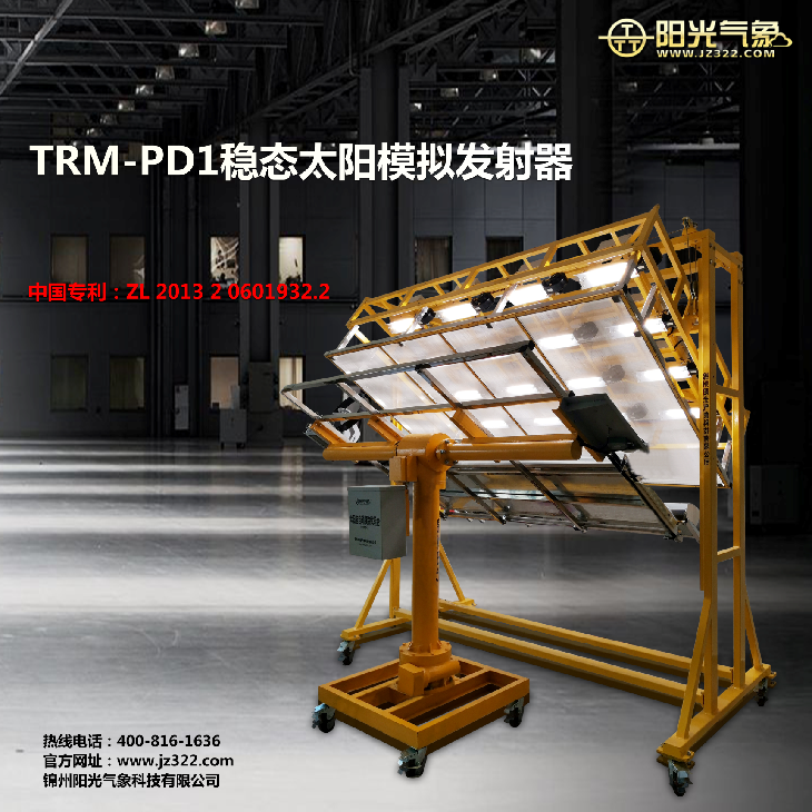 TRM-PD1稳态太阳模拟发射器(矩阵1.5米*2米)是锦州阳光科技发展有限公司根据多年太阳模拟器生产经验开发的矩阵式模拟光源(称人造太阳),专用于太阳能产品室内测试的实验设备。系统具有操作简单、使用方便,安全可靠的特点。模拟器光源采用(12)组独立的线光源,组成矩阵式结构,光源的个数、位置、光强都灵活可调,以保证有效辐照面积内的光均匀性和稳定性。采用主机现场与微机网络联合定时控制功能,可以手动或自动启动光源,定时控制发光时间,为保证光源质量,用太阳辐射仪实时监测光源的辐射及亮度,由于氙灯照射温度较高,设有测温报警功能以保证系统的安全。该产品适用于检测中心,科研机构,太阳能产品生产厂家等单位。
