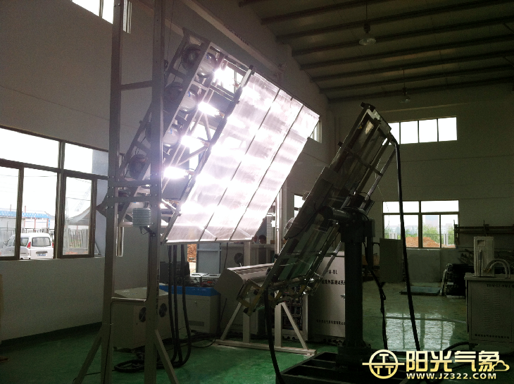 光源的均匀性是太阳模拟器的重要指标,一般通过调整每只光源的亮度与位置只能改变大的均匀误差。但精密均匀性调整必须通过光源均光板完成。均光板是一种金属网格状的透光装置,是我公司的专利产品,通过改变网格的密度,实现各点光的均匀性的调整,调整精度很高。其采用不锈钢材料,耐高温,不影响光谱质量,尺寸:2.2米*1.7米安装在距离光源0.6米的矩阵式发光装置上,经过均光板发出的光源均匀性较好,照射集热器表面,满足试验要求。