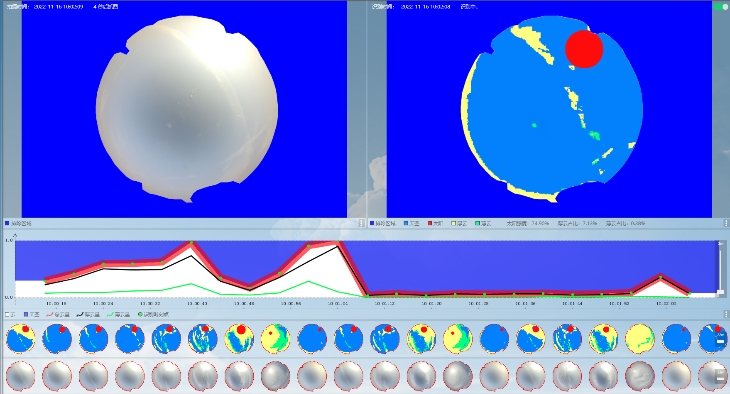 该系统内置了自主研发的强光干扰抑制算法、衍射光抑制算法、除雾算法、云层识别算法等重要算法,必要时可对各算法的相关参数作出调整,以适应各种极端条件下的天空影像数据识别。