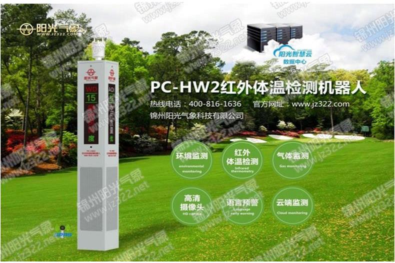 PC-HW2 红外体温检测机器人,是锦州阳光气象旗下的一款智能红外体温检测机器人产品, 是集红外体温检测、气象环境监测、空气质量预警、语音播报、LED 彩屏显示等功能于一体的智能平台型红外体温检测机器人。实...